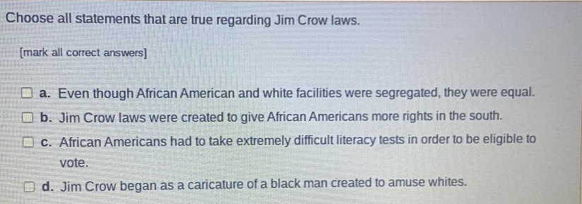 Post a Comment for "Jim Crow Laws Were A Legalized System Of Brainly"