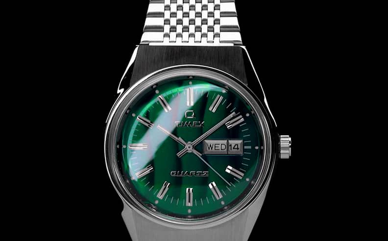 Buy in monthly payments with Affirm on orders over 50. Reissued for today Timex recreated every detail a period-correct woven stainless-steel bracelet functional battery hatch two-tone case luminescent paint and a striated green dial. Timex official 1 year warranty included.